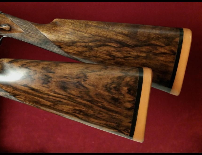 incisione di K.Hunt, self-opening, sicura automatica, canne demibloc, bindella piena, bigrillo, calcio inglese
