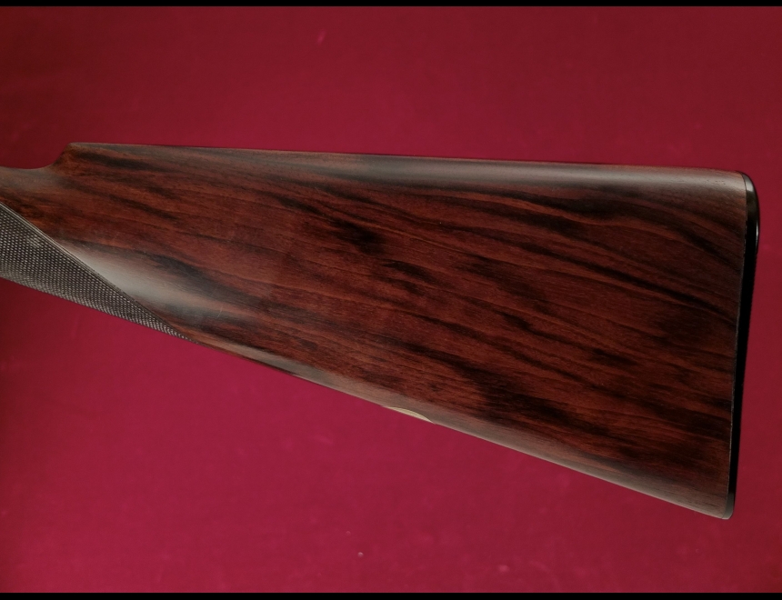 Drop Lock model, hand-detachable locks, Deeley & Taylor patent 17731 of 1897, solid top-rib, single-selective trigger, straight-grip stock